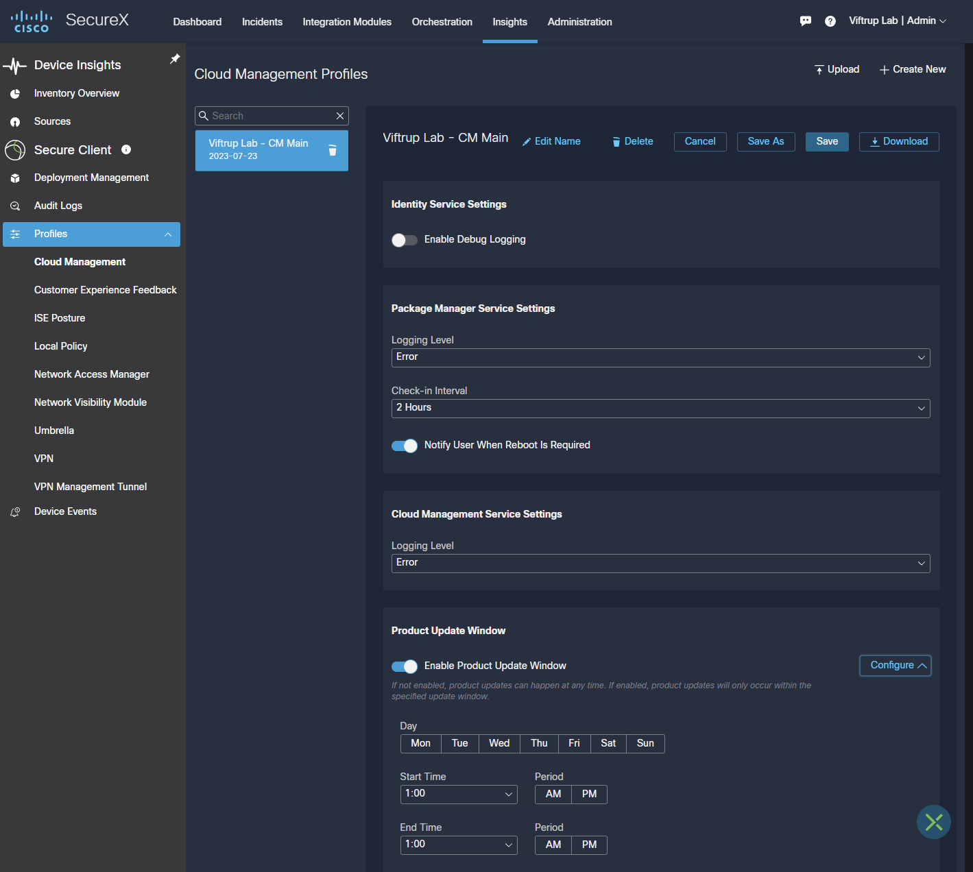Be advised if you’re already using other means of web-headends for maintaining profiles, it can override your configurations set by SecureX - the rule of thumb is you should only have one system controlling the profile configurations or be sure to keep all systems updated with changes.