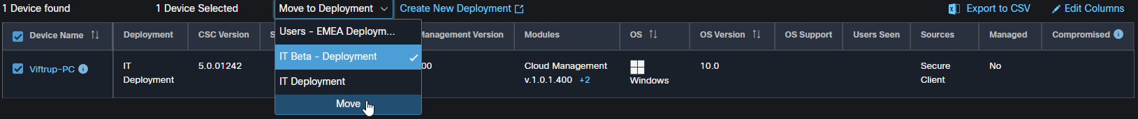 For example, change our current deployment from “IT Deployment” to “IT Beta - Deployment” - this will change modules and profiles once the CM check-in timer has been reached and re-configure our CSC as desired by the selected deployment policy.